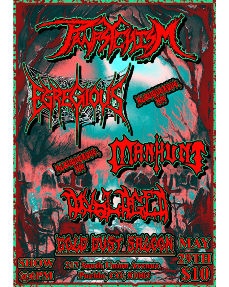 Join us for some Metal with Pueblo favorite, Panpsychism, with special guests, Egregious, Manhunt (both from Alb, NM), and Divolged. All ages. Doors at 5pm, show at 6pm. $10 @the door.